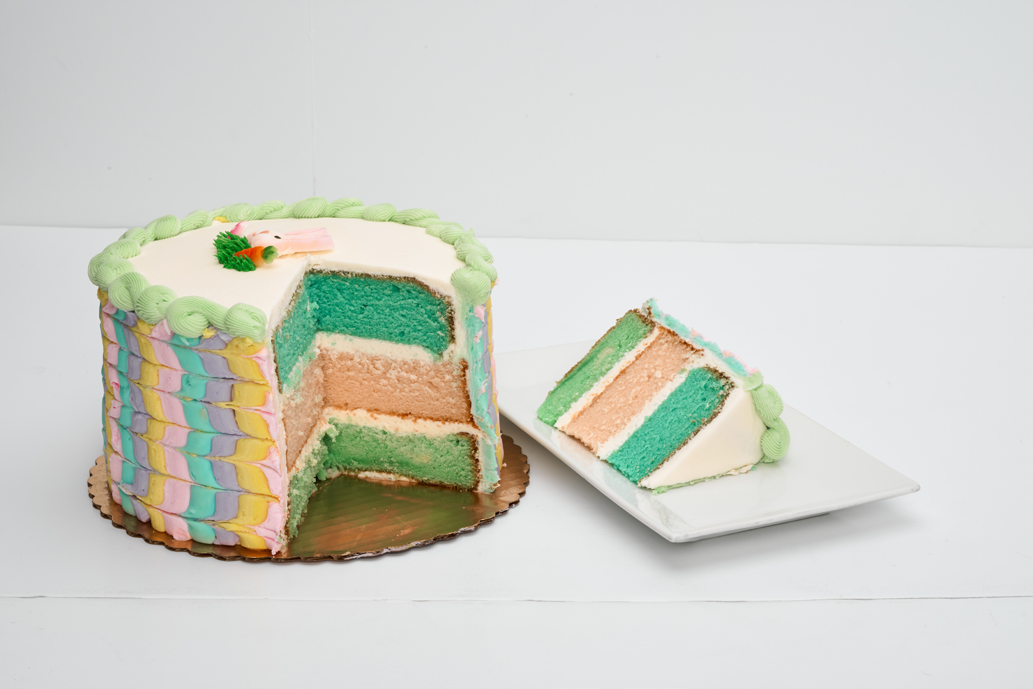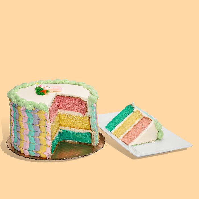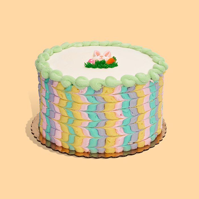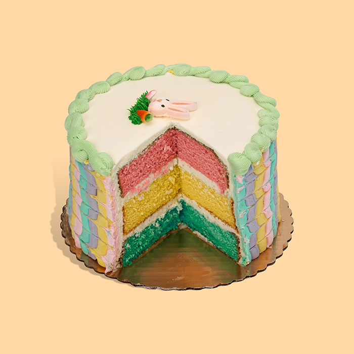 A cake to make you hoppy! Celebrate Spring the sweetest way with our Easter Parfait Cake! Featuring our classic almond cake in festive colors layered with rich buttercream icing, made from scratch daily. Decorated with beautiful pastel colors and an Easter bunny on top, this is the perfect treat to celebrate the end of Lent with your loved ones. 8″ / Serves 12-15 **PLEASE NOTE THAT IN STORE PICKUP ORDERS MAY VARY BY LOCATION**