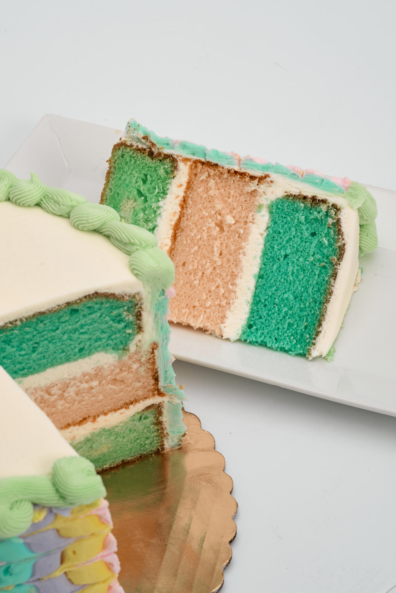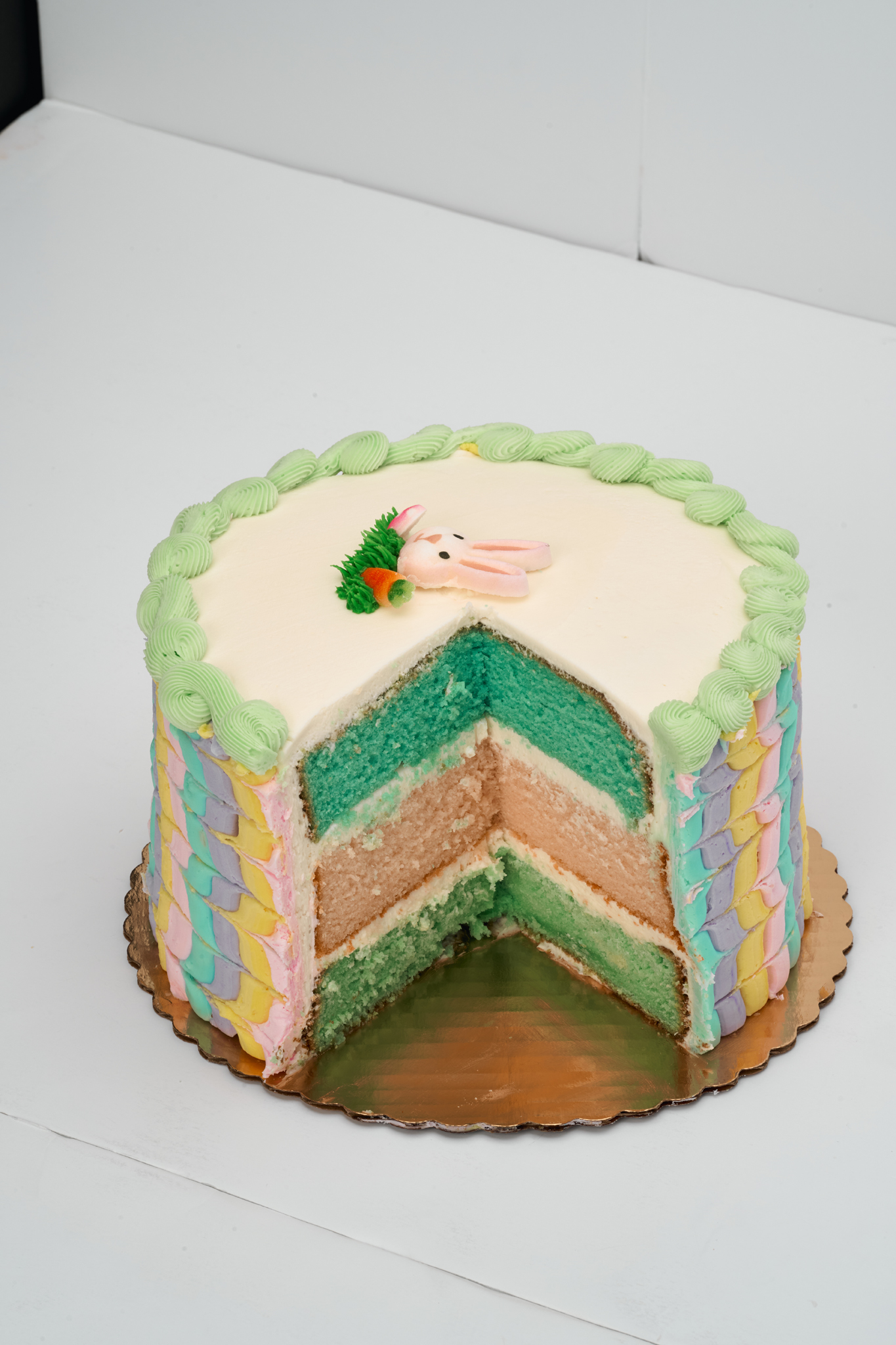 A cake to make you hoppy! Celebrate Spring the sweetest way with our Easter Parfait Cake! Featuring our classic almond cake in festive colors layered with rich buttercream icing, made from scratch daily. Decorated with beautiful pastel colors and an Easter bunny on top, this is the perfect treat to celebrate the end of Lent with your loved ones.